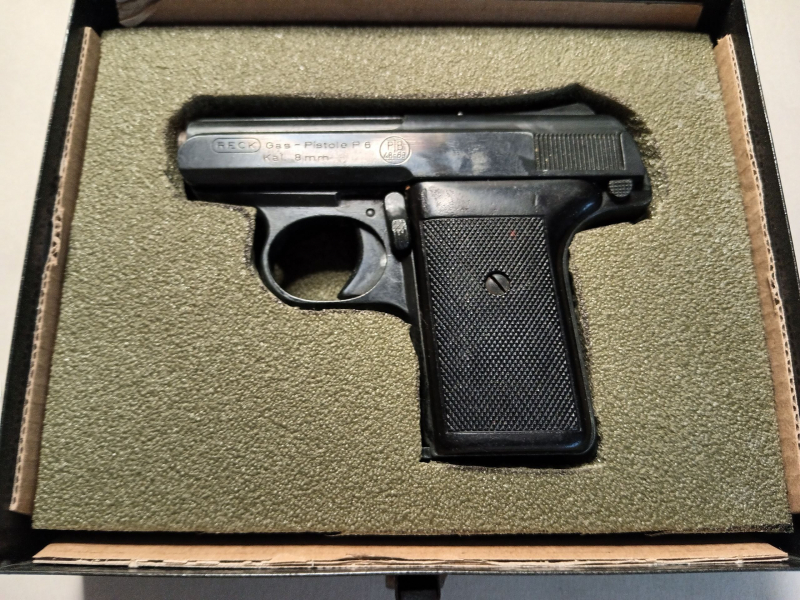 Ich verkaufe hier aus einem Nachlass eine alte Gas und Signalpistole von RECK, es handelt sich um eine P6 Taschenpistole.