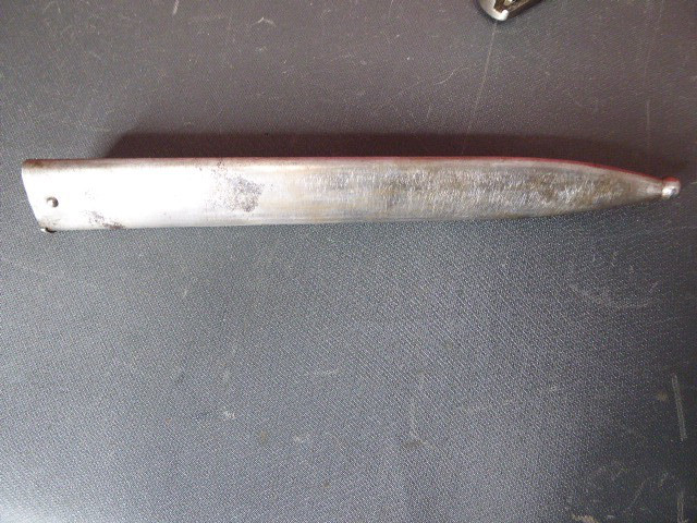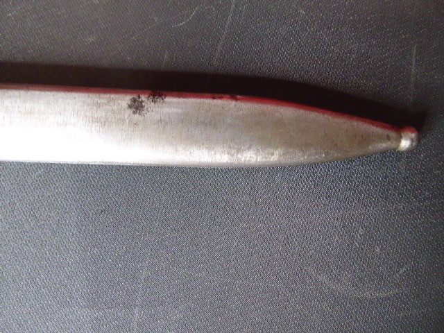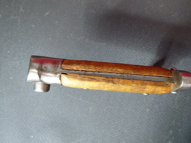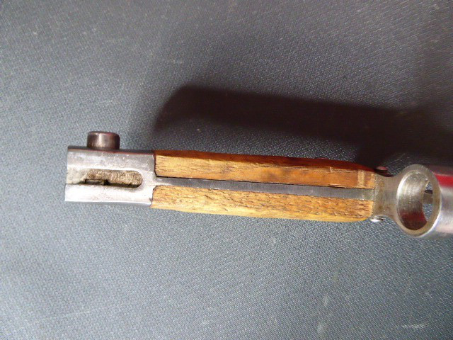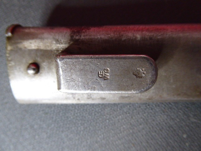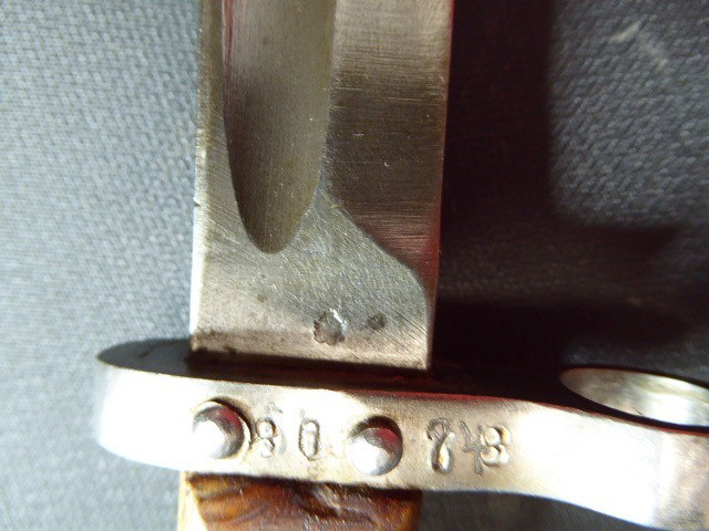Aus meiner Sammlung gebe ich, ein altes Österreich Bajo mit Stahlscheide Klinge mit CEWG andere Seite Doppeladler Punze ab. Griff zwei Holzschalen, Drücker mit Funktion. Stabile einschneidige Klinge einseitig CEWG andere Seite mit Doppeladler Punze. Scheide Eisen Parierung Identisch gestempelt wie die Klinge CEWG darunter Doppeladler Punze. Das Teil ist im Guten Sammelwürdigen Zustand. Alles andere entnehmen Sie Bitte den Fotos. Gesamtlänge: 37,5 cm, ohne Scheide: 36 cm, Klingenlänge: 25 cm, Klingenbreite: 2,3 cm. Kann zu jederzeit bei mir besichtigt werden. Privatauktion keine Rücknahme und Garantie.