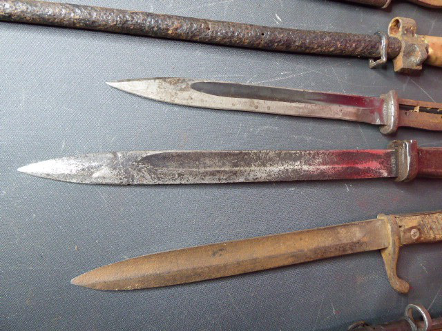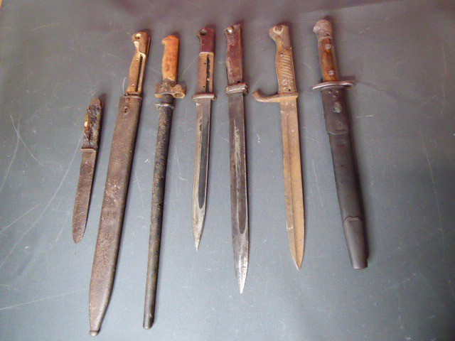 Konvolut von 6 alte Deutsche Seitengewehre und 1 Dolch als Ersatzteil Spender