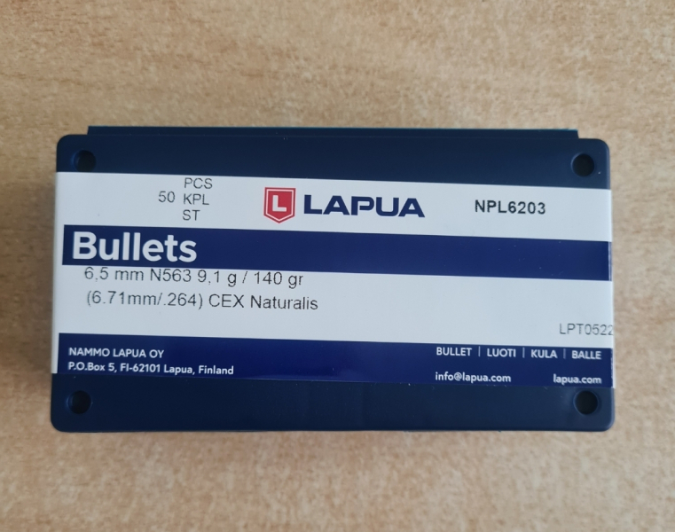 angeboten werden 50 Stück Lapua .264 Dia (6,5mm) Naturalis 140gr, bleifreies Kupfergeschoss für die Jagd mit verdeckter Hohlspitze, neu in ungeöffneter OVP, Lapua N563