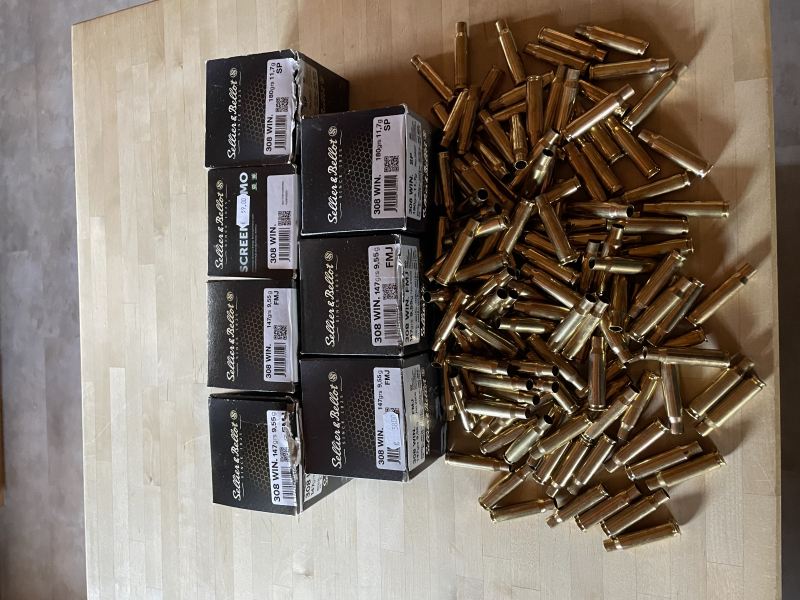 Biete 500 Hülsen, Kaliber .308, Marke S&B. Sortenrein jedoch nicht losrein. Hülsen sind entzündert und im Tumbler nass gereinigt. Hülsen wurden in einem Indoorstand im Rahmen der jagdlichen Ausbildung verschossen. Teilweise in den Originalschachteln.