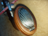 Nußbaumholz mit Fischhaut und einer muschelförmigen Klappe als Abschluß, eingesetzter Flint, gebraucht,