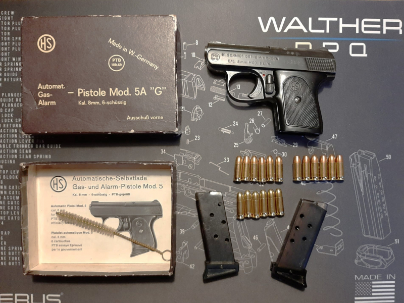 dazu ein Ersatz-Magazin und 18 legale Deko-Patronen Kal. 6,35 mm. // Die Waffe ist in einem sehr guten und funktionsfähigen Zustand. // Die HS 5A "G" PTB 100/69 ist nur von 1969-1971 hergestellt worden und sie hat als Laufsperre nur zwei kleine Stahlstifte rechts und links an der Mündung verbaut. // Manche sagen es wäre die kleinste Laufsperre der Welt. // Hierzu gibt es ein Filmchen auf YouTube dazu diesen Suchtext eingeben : "Die kleinste Laufsperre einer Schreckschusspistole-HS5 mit PTB-Nummer 100/69" (Autor : Tactical-Dad) // Privatverkauf nach neuem EU-Recht ohne Gewährleistung , keine Rückgabe oder Nachverhandlungen. // Versicherter Versand über Verkäufer.