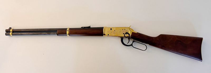 Winchester Modell 1894 .30-30Win (Yellow Boy), limitierte Auflage, feine Gravur auf dem Systemkasten, Nussbaumholzschaft, Sattelring, verstellbare Visierung. Hervorragend für Sammler - sehr seltene Ausführung.
