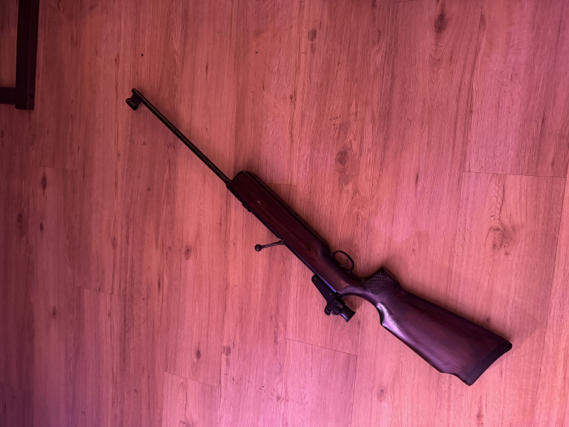 Der Schaft ist Buchenholz und wurde, wie es typisch für Haenel Gewehre ist, nussbaumfarbig gebeitzt.
