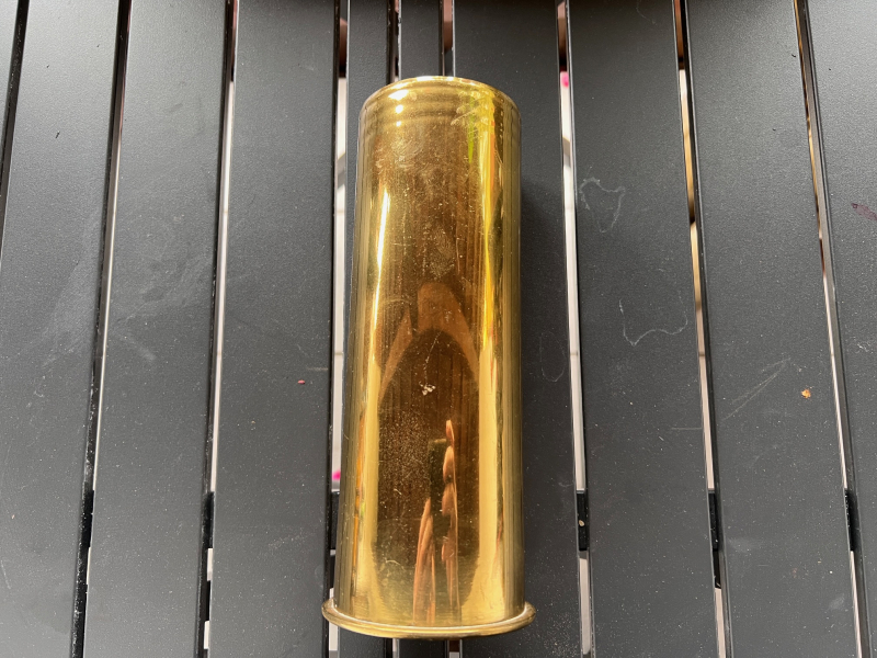 Messing Kartusche St56, 1.Weltkrieg "Patronenfabrik Karlsruhe März 1911" Durchmesser 77mm, 230mm lang. In einem Top Zustand.