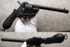 Sie bieten auf eine absolute Rarität, einen Deko Lefaucheux Stiftfeuerrevolver. Dieser Revolver entspricht einer zivilen Variante des M 58 der französischer Kriegsmarine und war eines der häufigsten Revolvermodelle im US-Bürgerkrieg! Material: Druckguss, Trommel frei, man kann sie mit Deko-Patronen bestücken (11 mm), Lauf an der Wurzel verschlossen, Only-Double-Action-System. Dieses Modell wurde nur kurz gebaut und war eigentlich nicht auf dem deutschen Markt erhältlich. Es ist neben dem British Bulldog eines der seltensten DENIX-Modelle aus den 1980ziger Jahren, welche gefertigt worden sind und ist in der Qualität, den heutigen Modellen weit überlegen. Achtung, auch wenn der Revolver täuschend echt aussieht und dem Original bis in das kleinste Detail entspricht: Es handelt sich um eine reine Modellwaffe, welche bereits als Dekorations-Modell gefertigt worden ist, es war nie eine schußfähige Waffe! Zustand: Gebrauchsspuren, es fehlen der Ausstoßer und die Ladeklappe siehe rote Markierungen.