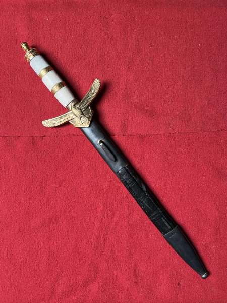 -Durch Mühsal zu den Sternen-Zitat SENECA….Die Scheide ist nicht original, sondern dient nur als Schutz. Konnte den Dolch nicht zuordnen. Militärakademie oder Kadettenschule??? Welches Land???Alter auch unbekannt!