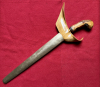 Saubere Damast ( Pamor) Klinge, ohne Rost. Leicht beschnitzter Handgriff aus hellem Holz. Messingummantelte Scheide , auch hier helles Holz ohne Ausbrüche und Beschädigungen am Scheidenkopf. War auch wohl über Jahrzehnte ein Wandhänger. Sanft gereinigt.