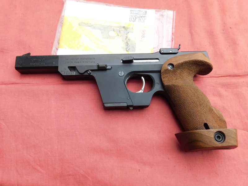 Sportpistole Walther GSP, ACHTUNG Linksgriff, verstellbar, mit Daumenauflage ca. Handgröße 9,5. 1 Magazin und Bedienungsanleitung dabei. Gültiger Beschuss vorhanden. Meiner Meinung nach nur minimale bis leichte Gebrauchsspuren.