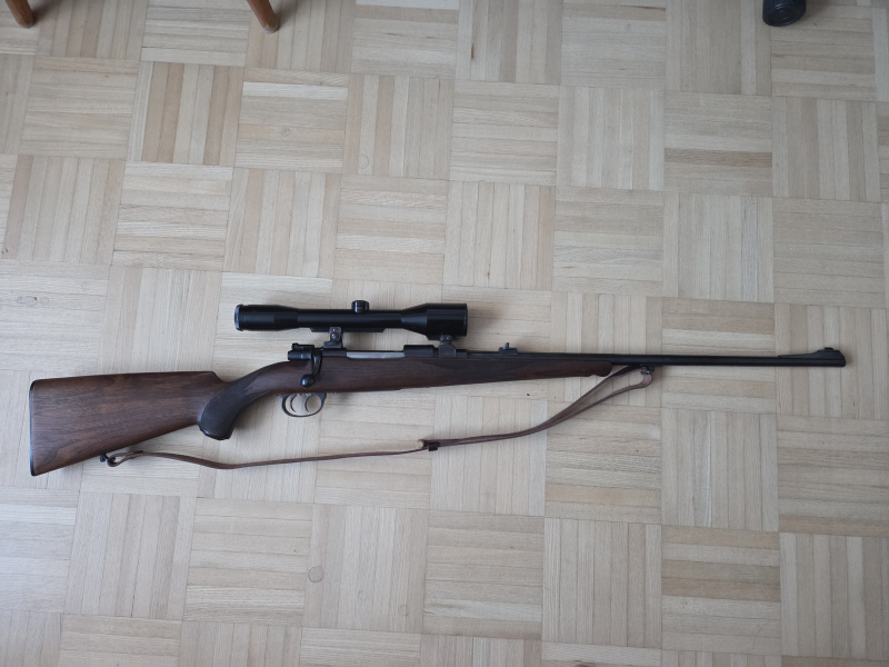 Das Zielfernrohr ist ein Zeiss Diavari 2,5-10x50, Absehen 4, klare Durchsicht und montiert mit eine SEM.