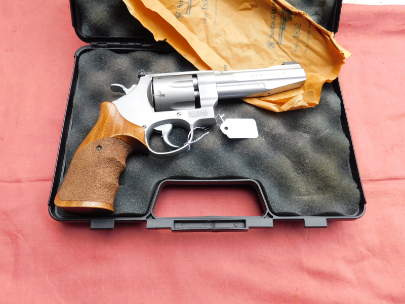 Revolver von S&W Performance Center (Neupreis ca. 2800 Euro) Modell 627-2 im Kal. .357 Mag. 6 Schuss Trommel, verstellbare Visierung, großer N Rahmen, gefutete Trommel. Sehr leicht und sauber auslösender Abzug, Timing perfekt! Sehr schöne Holzgriffschalen vermutlich Karl Nill, 5,5 Zoll Lauflänge, Lauf innen spiegelblank und Profil scharf. Die Waffe hat meiner Meinung nach kaum sichtbare Gebrauchsspuren. Eher fast neuwertig. Keine Magnumrille!!! Gültiger Beschuss vorhanden.