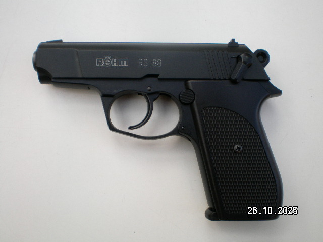 Sammlungsauflösung total: Verkauft wird diese schöne, handliche RG 88 im starken Kaliber 9mm PAK mit allem werkseitigen Zubehör und Reservemagazin / Koffer im Privatverkauf. Das rote Fähnchen schützt Lauf und Schlitten. Keine Garantie, keine Gewährleistung, keine Rücknahme. Versand nur BRD, deutsche Inseln bitte erfragen. Kein Internationaler Versand und Verkauf.