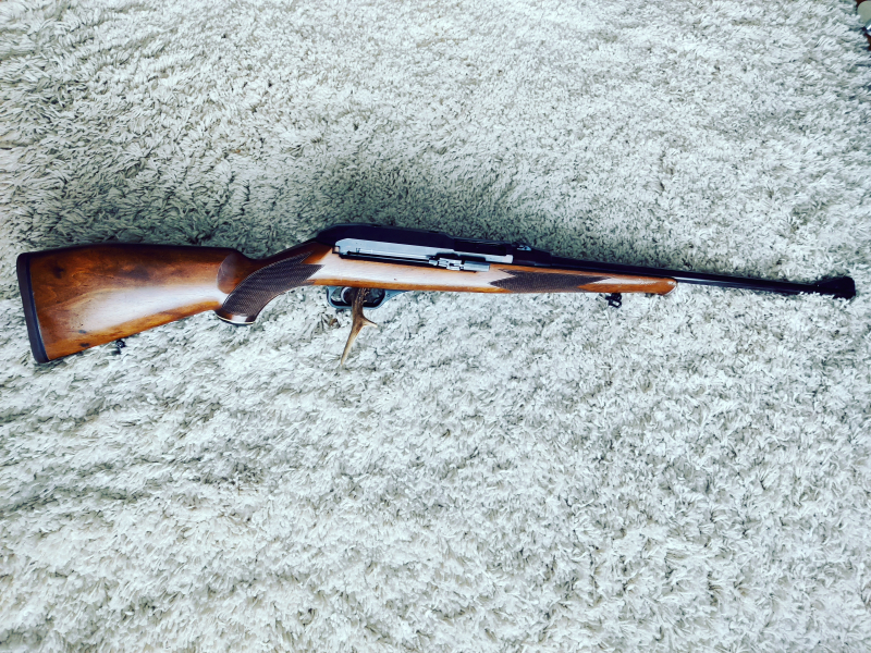 Gebrauchsspuren: Kratzer/Feinschliffe am Schaft / Oberflächenabnutzung an Metallteilen (siehe Fotos). Funktionalität und Verschluss sind technisch einwandfrei.