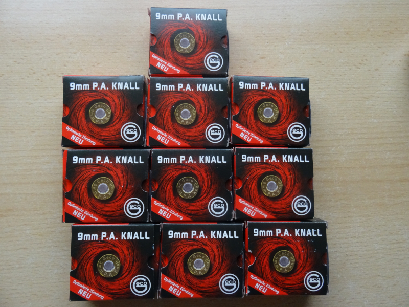 stark geladene,neuwertige Geco Kal 9mm PA-Knallpatronen