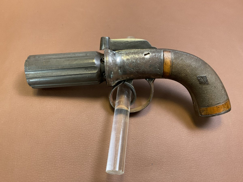 zum Verkauf steht ein originaler Bündelrevolver aus Frankreich im Kaliber .33 -deutliche Alters und Gebrauchsspuren -6 Schusstrommel -DA Abzugssystem -Lauf innen mit leichten punktuellen Roststellen -Lauftiefe 6cm -Gesamtlänge 20cm Achtung EWB erforderlich! Die Bilder sind Teil der Beschreibung Verkauf außerhalb von Deutschland nur nach vorheriger Absprache an zertifizierte Händler