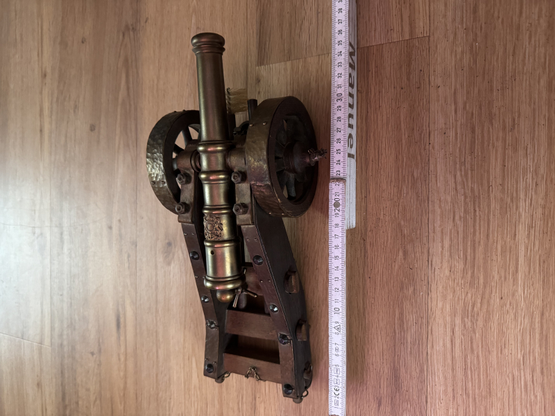 SCHWERE MESSING KANONE SEHR SCHÖN ALS DEKO ODER ZUM SCHIESEN GEMACHT LAUF IST 23cm LANG UND LAUFDURCHMESSER BETRÄGT 12 MILIMETER BOHRUNG GEHT BIS ZUM ZÜNDLOCH DIE KANONE IST HÖHENVERSTELLBAR UND BESITZT EINEN LADESTOCK UND REINIGUNGS BÜRSTE NUN VIE SPASS BEIM BIETEN DA PRIVAT KEIN UMTAUSCH MÖGLICH
