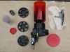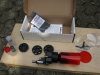 Mit dabei ist die Erhöhung (Auto Disk Rise), um das Füllgerät höher zu montieren und ringsherum mehr Platz zu haben bzw beim Weiterdrehen des Pressenkopfes nirgends anzustehen. Die Erhöhung besteht aus einer Außenhülse, die das Füllgerät höher positioniert und einer Innenhülse, die die Betätigungs- und Aufweitbewegung überträgt.