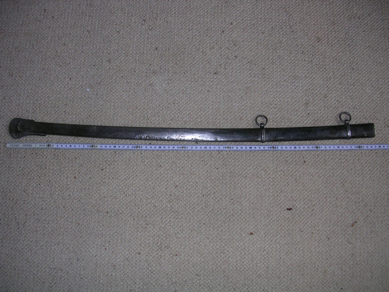 blanke eiserne scheide,2 trageringe,war für einen art.korbsäbel mit flachen mundblech für parierstangenlappen, kann auch für einen kavalleriesäbel sein,es sind gebrauchsspuren vorhanden,maße bild und wie folgt. kl.805 mm