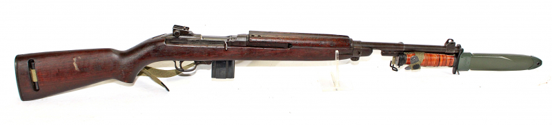 Führiger Selbstlader der US-Armee in einem sehr guten Zustand. Diese Waffe wurde von NSATIONAL-POSTAL-METER gefertigt. Gute Exemplare werden immer seltener. Bewährtes Short Recoil-System. Spiegelblanker, 45cm langer Lauf von MARLIN. Manuelle Sicherung. Original Magazin auf 10 Patronen gekürzt. Mit fein verstellbaren Visier und Bajonetthalter. Mit deutschen Beschuss. Komplett mit Repro Trageriemen, Öler und Repro Bajonett M4 mit Scheide M8.