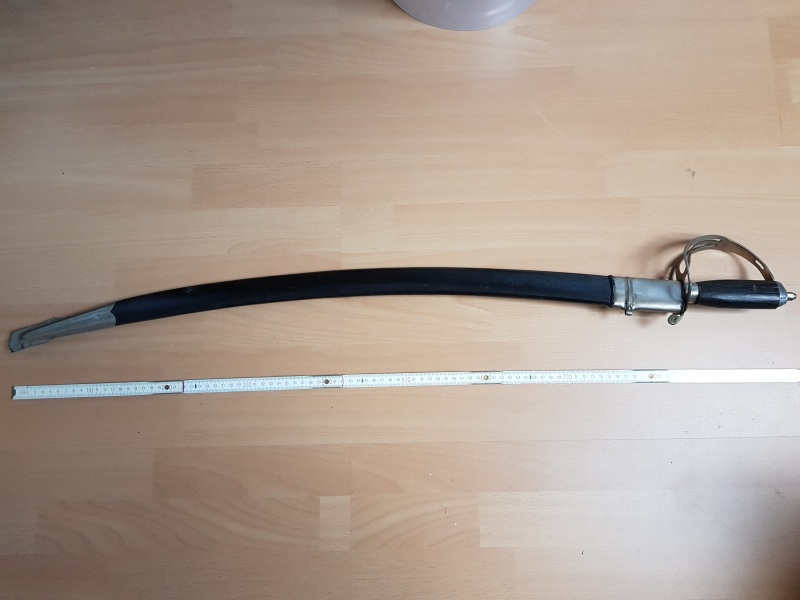 Versteigere ein Säbel mit Scheide. Das Blatt hat eine schöne Gravur mit dem Schriftzug Made in India. Gesamtlänge ca.1m. Schauen Sie sich auf meine anderen Auktonen an um Versand zu sparen. Verkauf ohne Garantie und Gewährleistung. Ausschluss der Sachmängelhaftung. Umtausch bzw. Rücknahme ausgeschlossen.