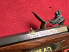 Achtung Pedersoli Fans: Sehr gepflegte Steinschloß Kentucky , Cal.44, aus früher Fertigung mit bräuniertem Lauf, buntgehärteter Schlossplatte und sehr schön gemasertem Nussbaumschaft. Auch aus einem Nachlass . Beide Rasten halten, schöner Funkenschlag. Ein winziger Holzausbruch am Schloss, denke aber , dass der leicht zu beheben ist. Siehe Detail-Foto! Sehr wenig geschossen, oder auch garnicht. Lauf sieht innen noch sehr schön aus. Die Bräunierung ist auch noch , ausser dem Alter entsprechenden Bespiel- und Putzspuren, , sehr schön.