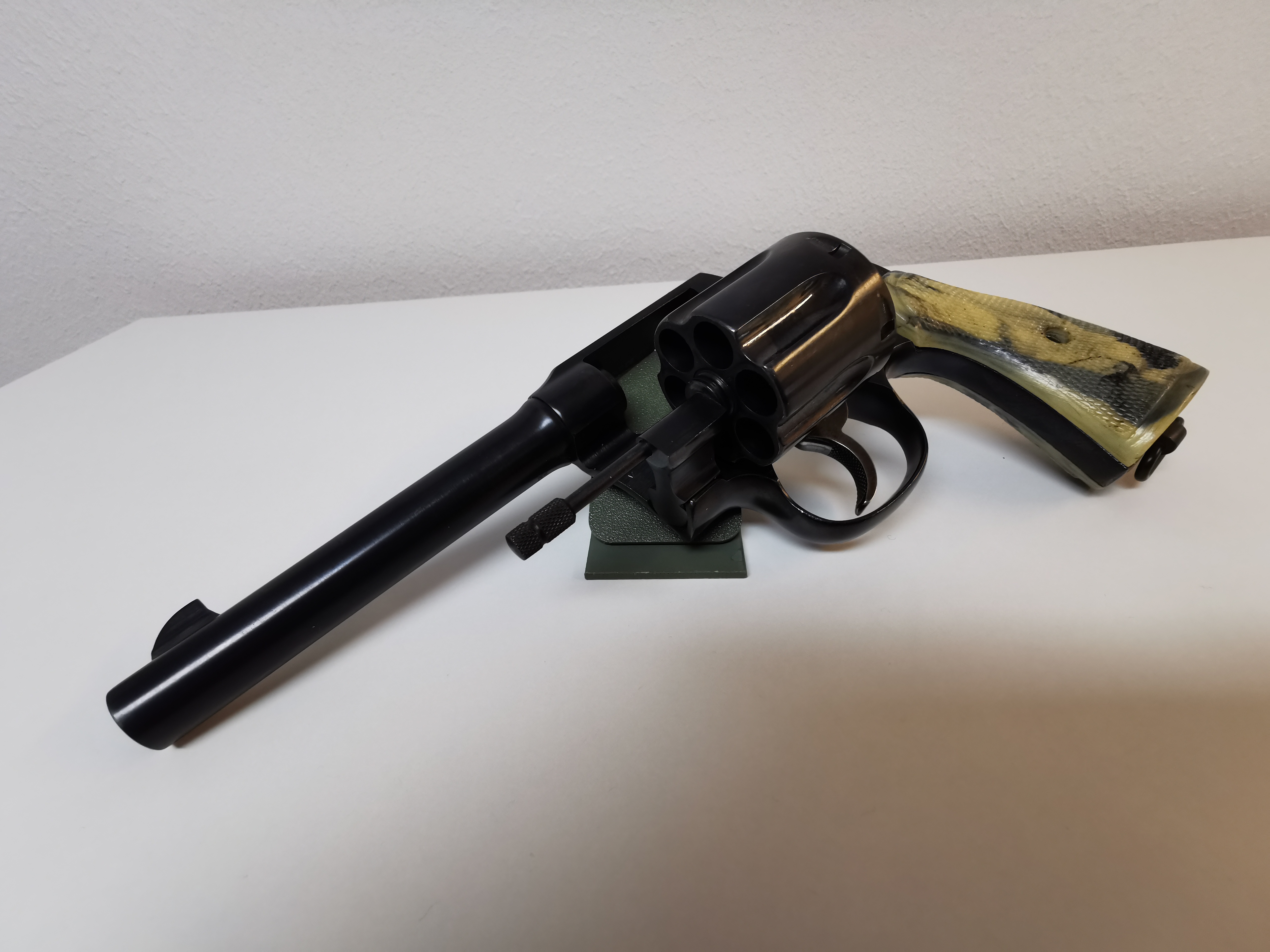 # der Revolver wurde von Colt`s Patent Firearms Manufacturing Co., Hartford, Connecticut U.S.A hergestellt von 1898 bis 1944. Wegen seiner Zuverlässigkeit und robusten Struktur wurde er nicht nur militärisch eingesetzt sondern auch an Private verkauft und von staatlichen Organisationen sowie in Polizeidiensten geführt. #