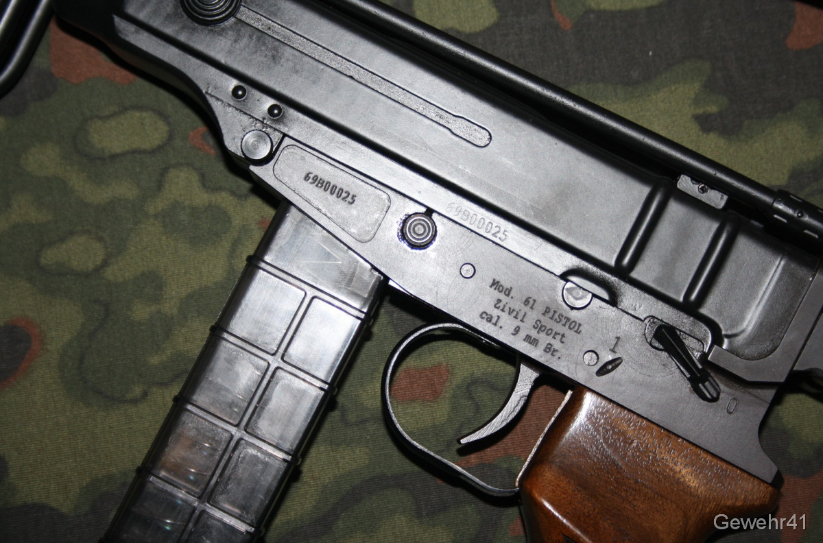 Sie bieten auf diese halbautom. Pistole von Czech Small Arms Modell VZ61 Scorpion SA im Kal. 9mm kurz. Absolut neuwertig und nur ein paar Schuss durch. Inkl. 2 Magazinen und Holster. TIP TOP! Lauf und Funktion einwandfrei.