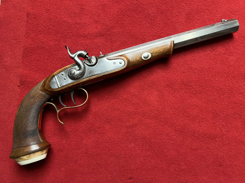 Diese, laut Auskunft der Frau des ehemaligen Besitzers wohl oft auf Wettbewerben und Meisterschaften in den späten 1980er , frühen 1990er Jahren geschossene Perkussionspistole