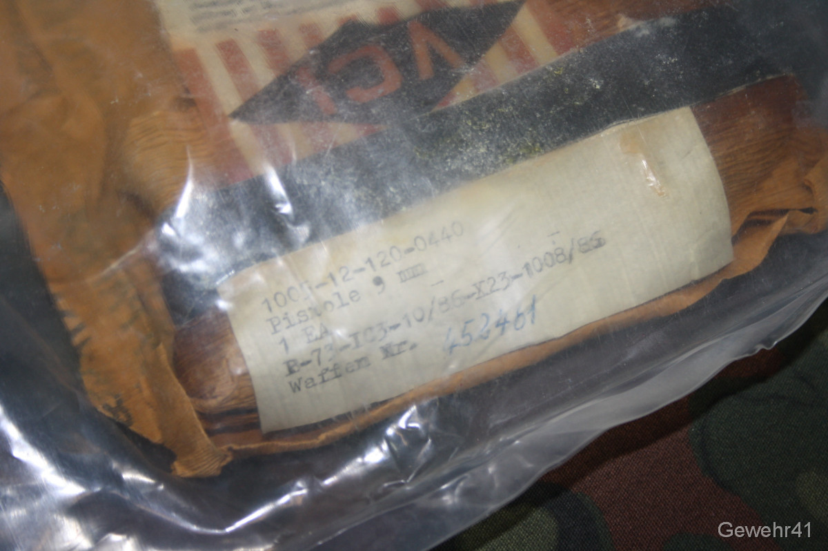 Sie bieten auf eine Bundeswehr Pistole Walther P38/P1 im Kal. 9x19 aus der sog. "Material-Reserve". Die Pistole wurde nach der Überholung konserviert und verschweisst/verpackt für den Ernstfall. Seitdem nicht geöffnet!!! Alles daher im allerbesten, neu(wertigen) Zustand, siehe Bilder. Lauf und Funktion einwandfrei.