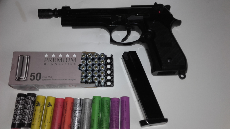Biete hier eine Reck Majamy 92 F INTERNATIONAL im Kaliber 9mmP.A. Mad. in West Germ. mit sehr echter Mündung, PTB Nummer (737), darf heute nicht mehr so gebaut werden. Die Waffe ist brüniert , bei den aktuellen Modellen ist das nicht der Fall, diese sind matt! Eine echte Beretta ist auch nicht matt! Aber für Umarex viel einfacher in der Fertigung, da einige Arbeitsschritte aus Kostengründen aus gelassen werden, das ist bei dieser Auktion nicht so. Ein Pyro-Becher ist auch vorhanden. Ich habe die Waffe auf freiem Feld getesdet wo es keinen gestört hat und sie funktioniert einwand frei.Daher fehlen die 5 Patronen in der Schachtel.Reinigen konnte ich sie nicht,da ich kein Putzzeug habe.12 Raketen sind auch noch dazu,etwas älter . Der Artikel ist gebraucht & frei ab 18 Jahren erhältlich.