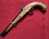 Leider ohne den passenden Anschlagschaft: Hier bin ich nun etwas überfragt, da ich diese Waffe nur als Zouave Pistole mit dem .58 Cal. kenne, diese hier aber Cal.45 aufweist. Seriennummer ist 2352 auf der linken Laufseite ersichtlich. War das eine Sonderreihe der Waffe, hat ein versierter eguner eventuell eine Idee? Die Schlossplatte ist buntgehärtet ,eventuell mit einem leichten Klarlack- Film überzogen. Auf jeden Fall ist die Waffe in einem sehr guten Zustand, wenige , minimale Bespiel-und Putzspuren, beide Rasten halten , stramme Feder, und das Schloß löst sauber aus. Ich habe auch noch eine Dose mit einigen passenden großen Zündhütchen mit Rand (Flügel Zünder), die würde ich dazulegen. Einge kleine Kratzer vorn am Lauf im Holz und über dem Abzug lassen sich sicherlich schnell beheben, da sie nur oberflächlich sind. Die Brünierung ist noch schön. Ausserdem sieht die Waffe für mich ungeschossenn aus., der Lauf ist schön blank. Foto!
