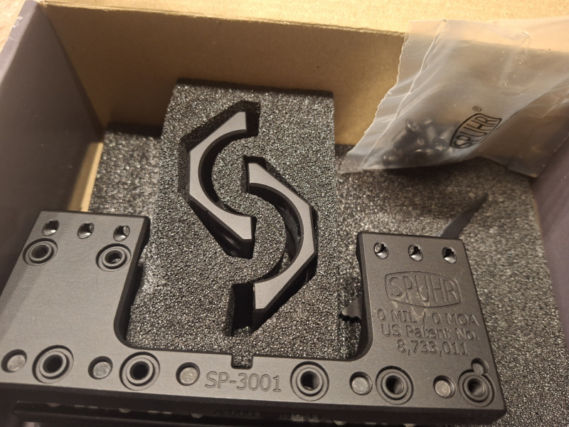 War nur einmal kurz verbaut, neuwertig. Nie verklebt. Spuhr ISMS ST3001. 30mm Ringe, 0 MOA Vorneigung.