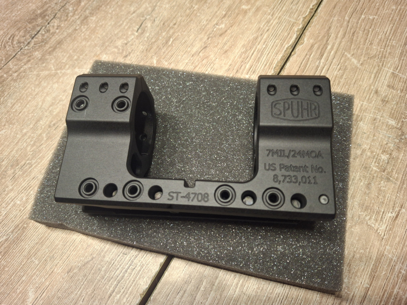 War nur einmal kurz verbaut, neuwertig. Nie verklebt. Spuhr ISMS ST4708. 34mm Ringe, 24 MOA Vorneigung. Höhe 44mm. Wird nicht mehr hergestellt, direkte Montage auf der TRG Schiene. Habe 2 davon, getrennte Auktion für die zweite Montage. Bei Fragen gerne WhatsApp 0173 8737026 Privatverkauf, keine Rücknahme, Garantie, Gewährleistung etc