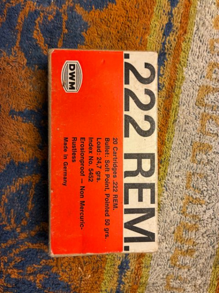 1 Schachtel 222REM von DWM ; ungeöffnet ; TM-Spitz 3,24g