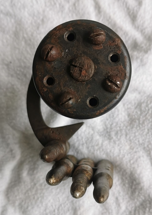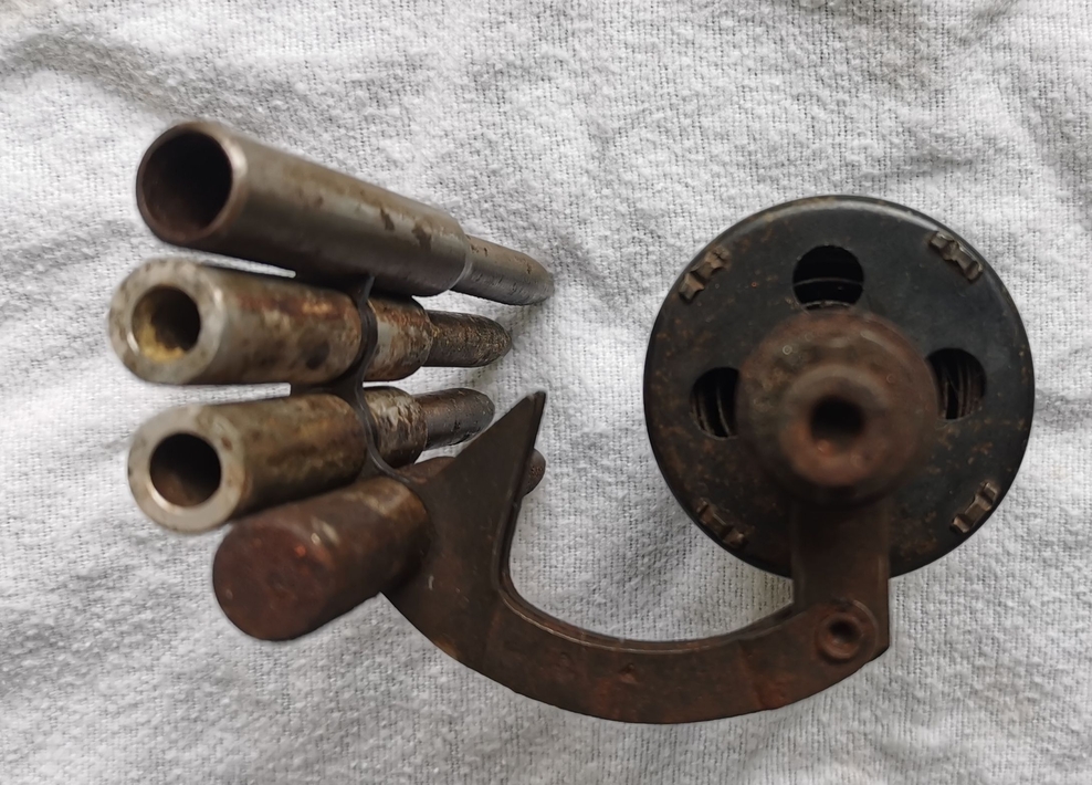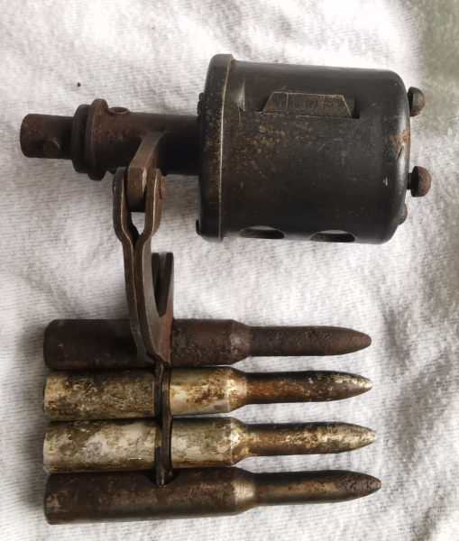 Verkauft wird hier ein Teil, das zu einem MG 15 oder MG 34 Doppel - Trommelmagazin zugehörig sein könnte. Vielleicht eine Spannfeder mit Blindpatronen.