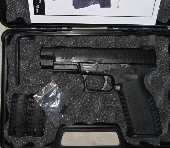 Hallo, biete hier eine Springfield XDM 4.5 CO2 in 4,5mm BB, schwarz. Die waffe ist in einem neuwertigen Zustand, keine gebrauchspuren. Sie Funktioniert einwandfrei, wurde nicht geschossen. Mit dabei: Werkzeug, anleitung, 2x wechselrücken und waffenkoffer.