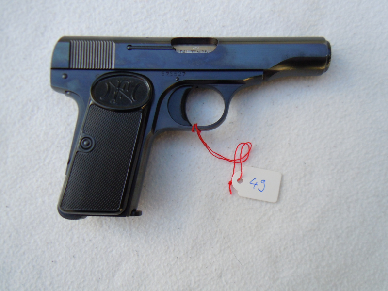 FN Selbstladepistole Mod. 1910 im Kal. 7,65 Browning. Sehr guter Zustand, nummerngleich, Bilder sind Bestandteil der Beschreibung. Gültiger belgischer Beschuß. Export nur über einen deutschen Händler.