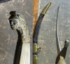 Gilded brass mount: pommel in the shape of a helmeted warrior's head.