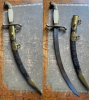 Wooden hilt with mother-of-pearl plates and gilt brass blades.