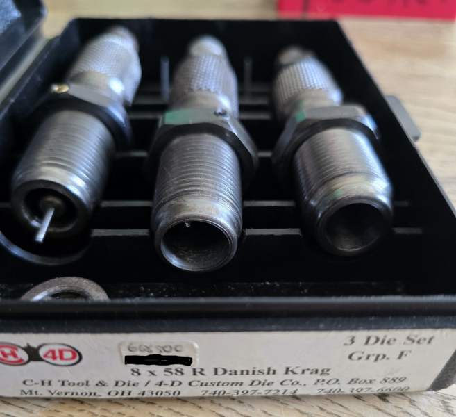 Moin. Ich verkaufe hier Matrizensätze im Auftrag, hier einen von CH-4D im Kaliber 8x58 R Danish Krag.