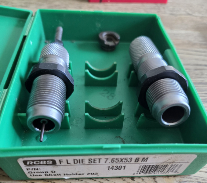 Moin. Ich verkaufe hier Matrizensätze im Auftrag, hier einen von RCBS im Kaliber 7,65x53 Belgisch Mauser inkl. Hülsenhalter.