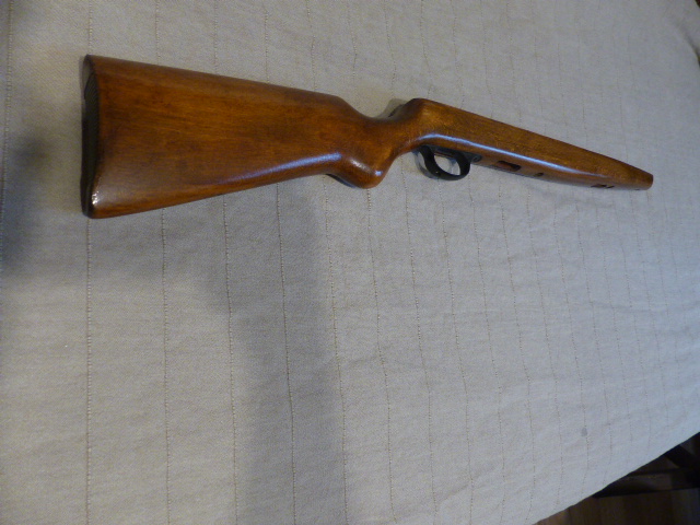 Schöner Schaft für ein 310-2 mit Abzugsbügel,Gummis und Löcher für Riemenbügel ohne Brüche mit altersbedingten Gebrauchsspuren.