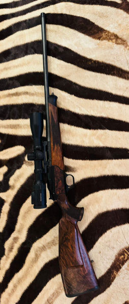 Zum Verkauf steht eine Blaser R93 Attache im Kaliber .300 Win. Mag. mit Roedale-Mündungsgewinde und 56 cm Lauf. Die Büchse war überwiegend Schrankwaffe; der Holzschaft (Attache) ist für das Alter hervorragend gepflegt, sehr dunkel und zeigt kaum sichtbare Gebrauchsspuren. Die Holzklasse beträgt mindestens HK5. Die Schussbelastung liegt bei maximal 50 Schuss; die Schussleistung ist Blaser-üblich hervorragend. Zielfernrohr ist nicht Bestandteil des Angebots.
