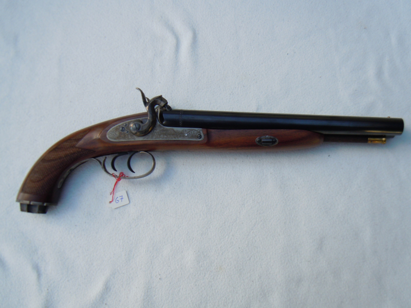 Doppelläufige Percusionspistole von Pedersoli Mod. "Howdah Hunter" im Kal. .58 BP. Neuwertiger, vermutlich ungeschossener Zustand mit Box und allem Zubehör. Bilder sind Bestadteil der Beschreibung. Karton mit Gebrauchsspuren, gültiger italienischer Beschuß. In einigen EU-Ländern ist diese Waffe frei erwerbbar. Ein Export kann aber auschließlich über einen deutschen Händler an einen Händler im Heimatland erfolgen !!