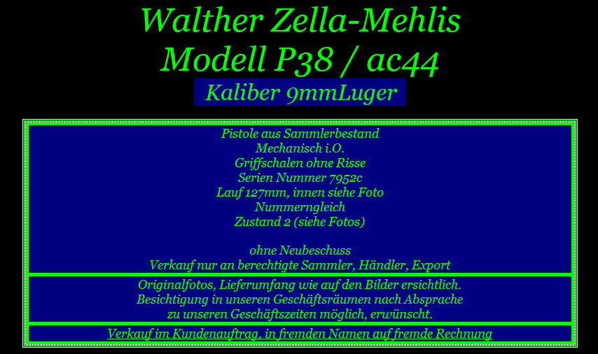 Bei der angebotenen Ware handelt es sich um eine gebrauchte Waffe, die einen historischen Wert als Sammlerstück hat und zudem als Antiquität zu bezeichnen ist.