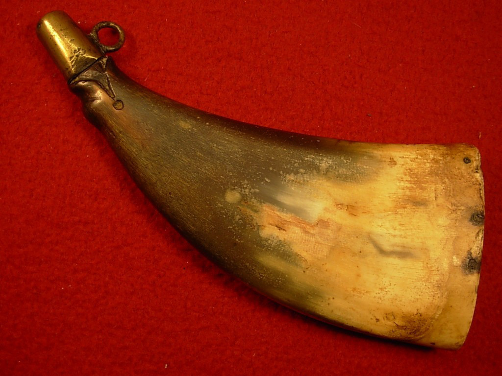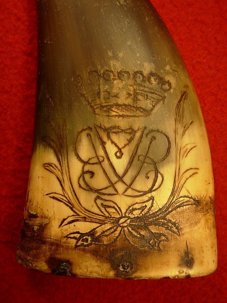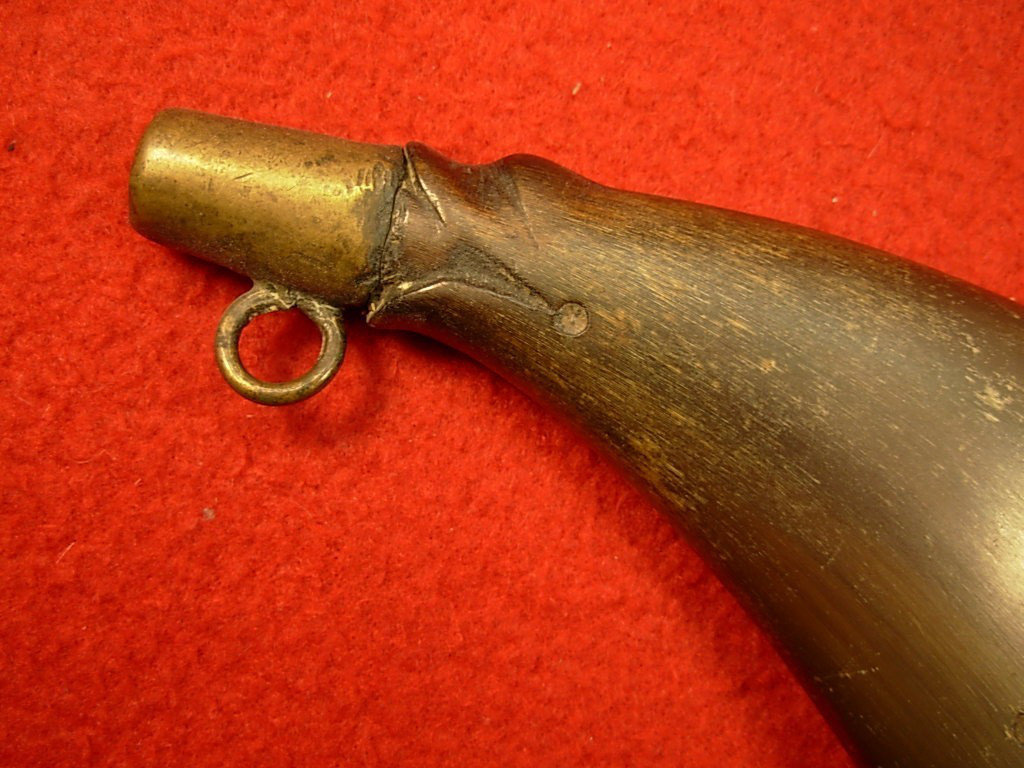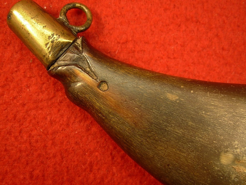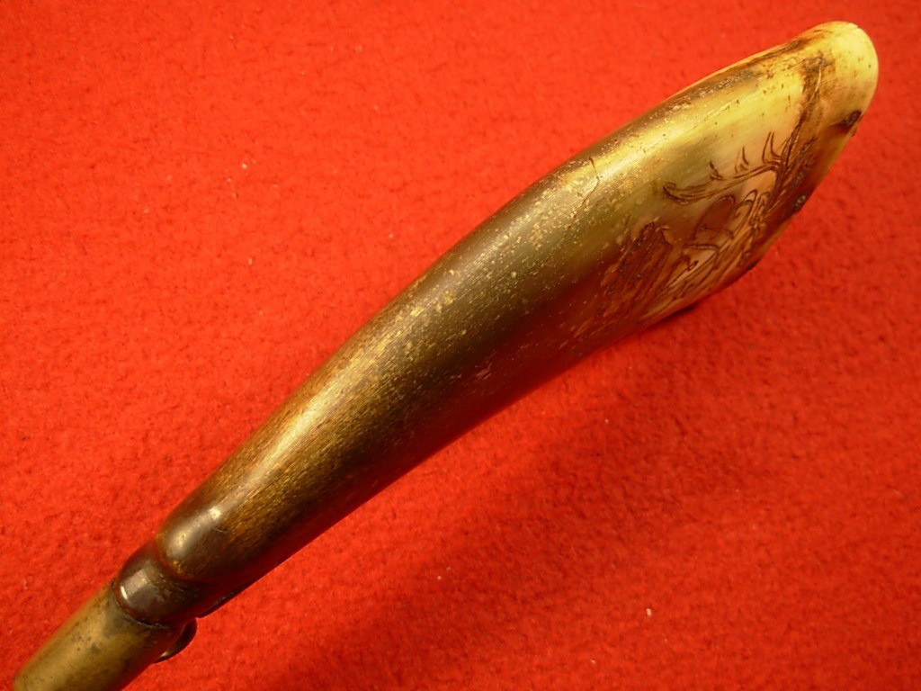 Alte originale Pulverflasche ca. 1860 mit Fürstlicher Krone – Auslass als Fisch / Delphin Kopf gestaltet –