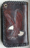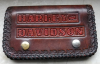 Ein handgefertigtes Harley Davidson Biker Portemonnaie mit entsprechenden Innen Fächern auch mit Reißverschluss für die Münzen, ich tippe auf Rindsleder aber ohne Gewähr, schöner wertiger Schriftzug und Adler Motiv, alters - und gebrauchsbedingte Spuren vorhanden, Rest siehe Fotos.