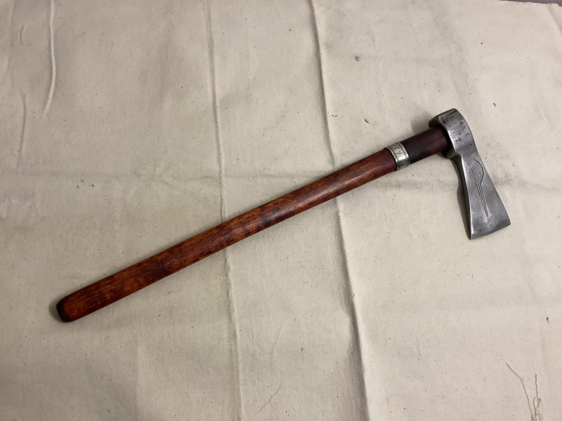 Gesamtlänge ca.50 cm, Streifen Ahorn Schaft. Solche Gürtel Äxte wurden oft zusammen mit der Jagdtasche und Pulverhorn getragen.