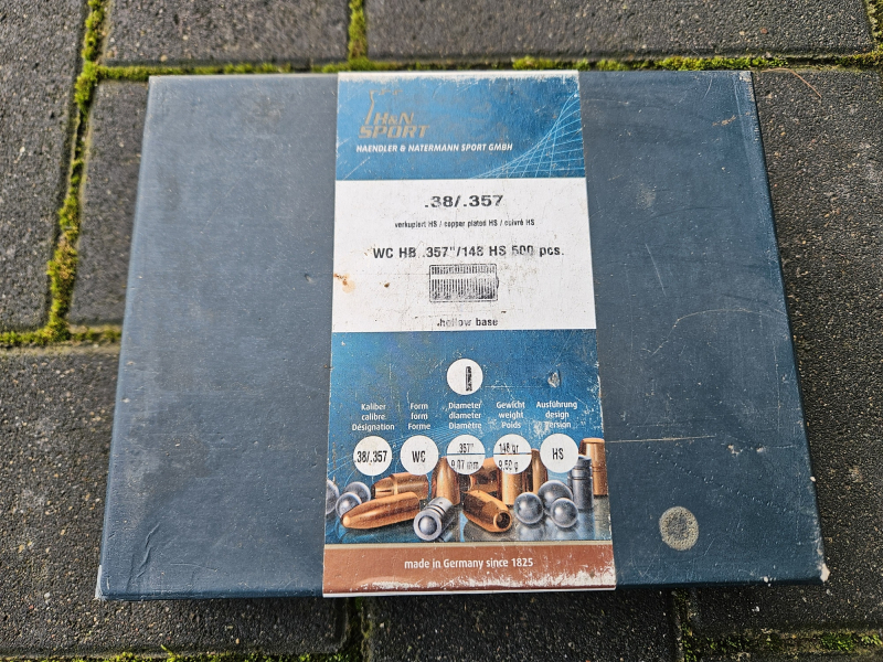 Zum Verkauf kommen 500 verkupferte Wadcutter High Speed Bleigeschosse des Herstellers Haendler & Natermann Sport im Kaliber .38/.357 mit einer zusätzlicher Kunststoffschicht, welche Bleiabrieb und Abschmelzungen verhindert. Die Geschosse im Diameter .358 wiegen 148 gr. und haben einen Hohlboden. Die Geschosse befinden sich in der Originalverpackung wie auf den Fotos dargestellt. Sollten mehrere Auktionen gewonnen werden, können Versandkosten gespart werden. Bei Fragen gern eine kurze E-Mail. Viel Spaß beim Bieten.